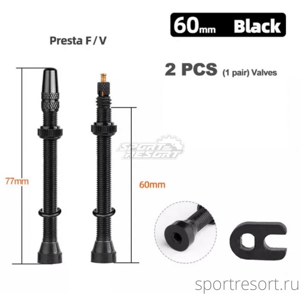 Ниппель для бескамерных колёс Deemount F/V-60mm Black (латунь, пара)