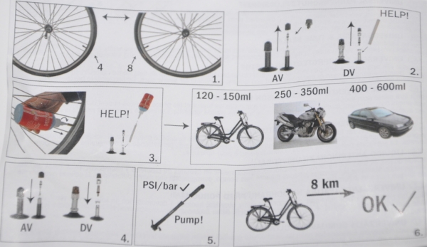 Антипрокольный наполнитель M-Wave Tire Emergency Pro, объем 250 ml, для камер и покрышек, для любых ниппелей, в комплекте ключ для выкручивания ниппелей и трубка для наполнения, для велосипедов 120-150 мл, для мотоциклов 250-350 мл, для автомобилей 400-600 мл.