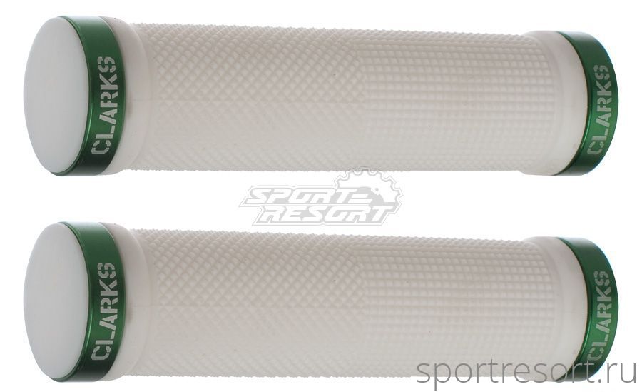 Грипсы CLARKS CLO201, ширина 130 мм, цвет белый с 2-мя зелеными локонами из алюминия, заглушки в комплекте.