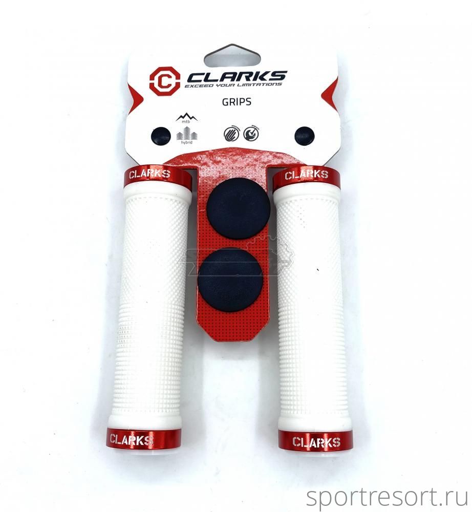 Грипсы CLARKS CLO201, ширина 130 мм, цвет белый с 2-мя красными локонами из алюминия, заглушки в комплекте.