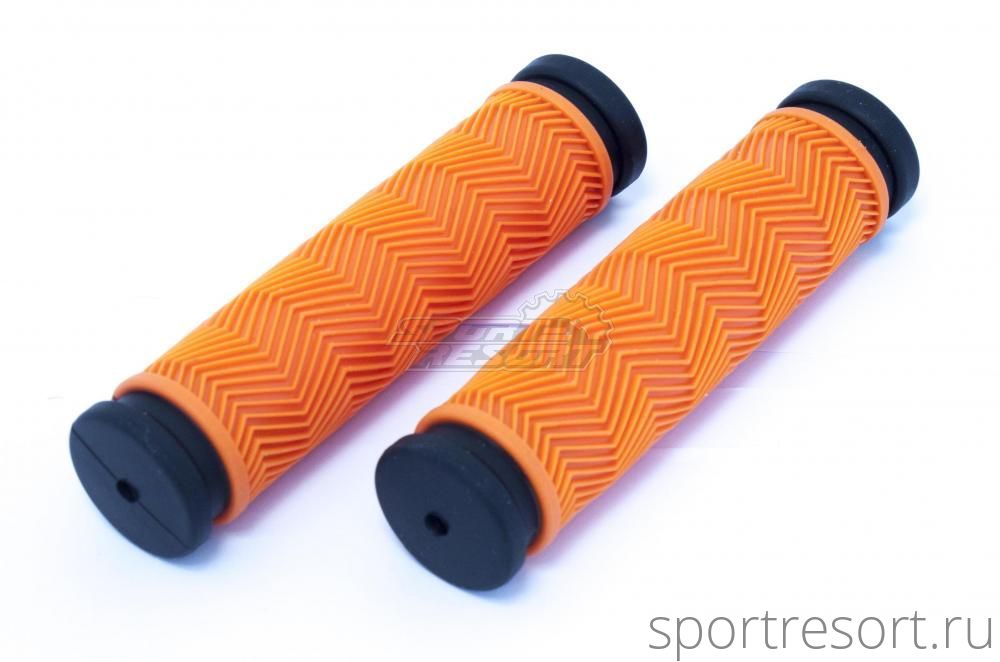 Ручки на руль резиновые 130мм антисокльзящие, оранжево-черные.