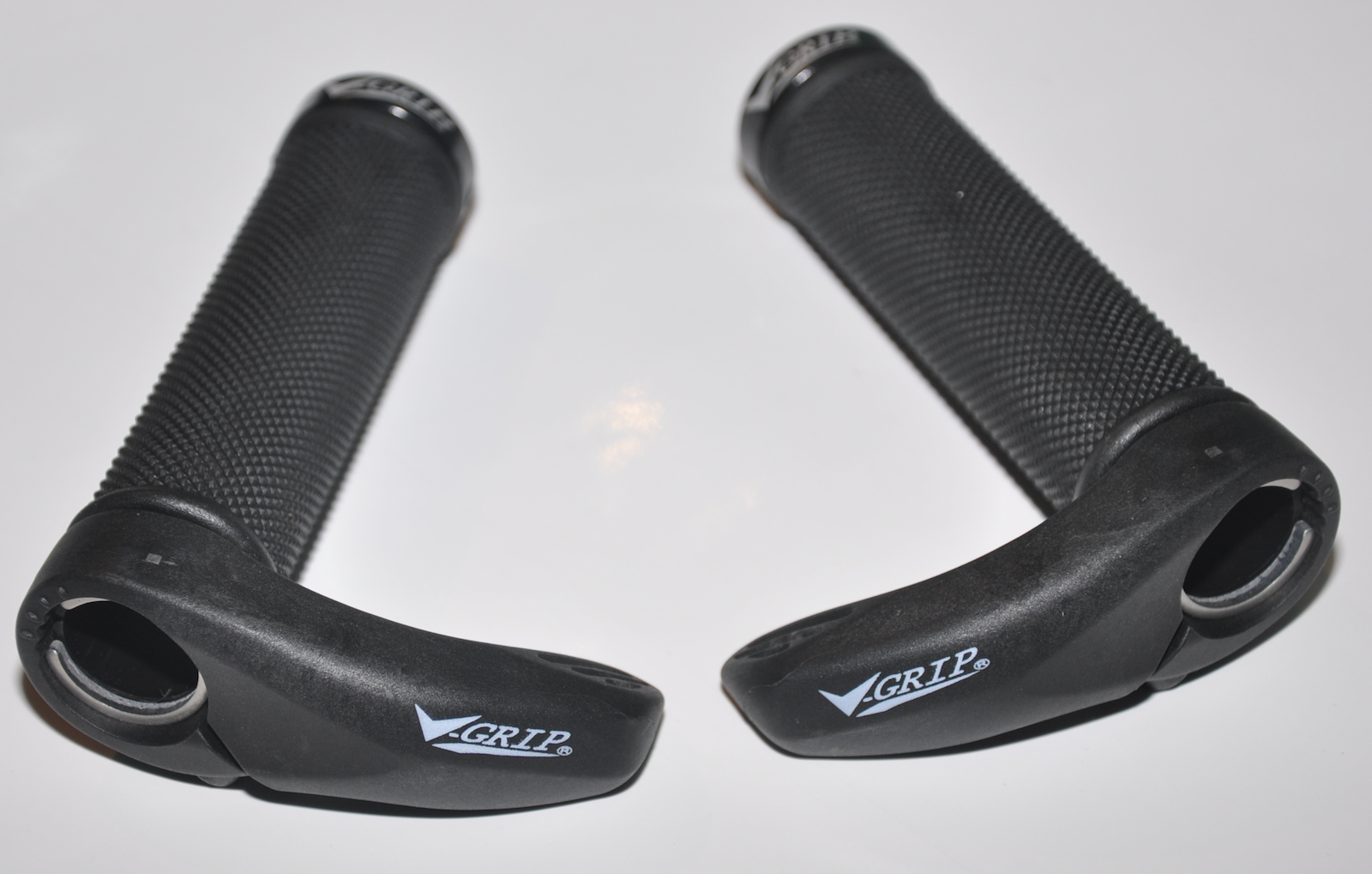 Грипсы Velo с интегрированными нейлоновыми рогами V-818BEN, ширина 137 мм, на жесткой основе, верх из мягкой резины, с алюминиевым грипстопом, заглушки в комплекте.