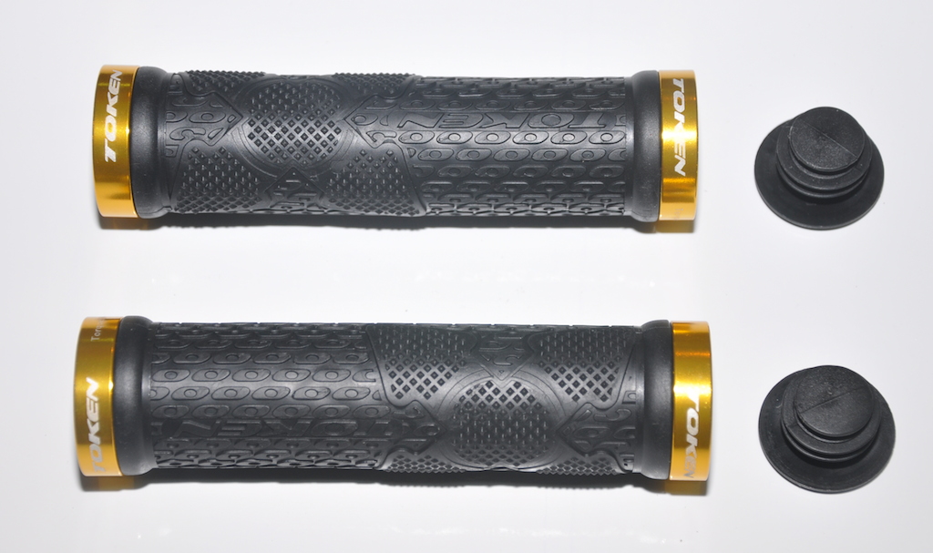 Грипсы Token TK9881, ширина 130 мм, черные с 2-мя золотыми алюминиевыми грипстопами, двойной компаунд non-sleep, вес 112 грамм.Характеристики