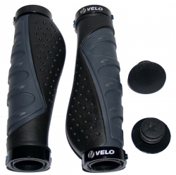 Грипсы Velo VLG-869AD3, ширина 140 мм, анатомические, алюминиевые кольца - грипстопы c 2-x сторон, заглушки в комплекте.