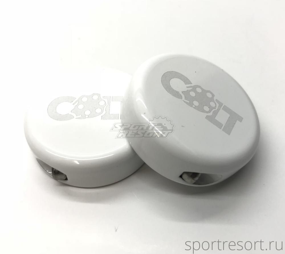 Заглушки на руль Colt Lock, цвет белый, материал алюминий, стягивающий механизм на одном болте, на любые стандартные рули, служит заглушкой на руль и предотвращает сползание грипс, вес 30 грамм (пара).