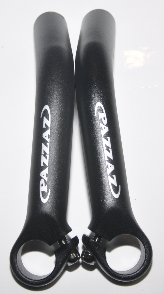 Рога для руля Pazzaz BE-23L, материал алюминий, кривые, длинные (длина 170 мм), диаметр на руль 22.2 мм, черные, вес 160 грамм.