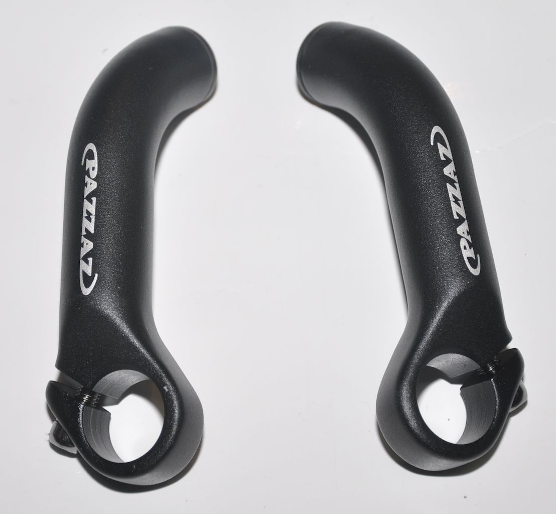 Рога на руль Pazzaz ВЕ-48, материал алюминий, кривые с изгибов внутрь, короткие (высота 120 мм), диаметр 22.2 мм, черные, вес 120 грамм.