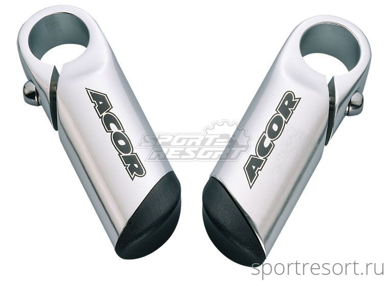 Рога на руль Acor ABZ-2003 Mini Oval, материал алюминий 6061, длина 80 мм, овальный профиль с выемкой под палец сверху, серебристые, с заглушками.