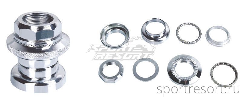Рулевая колонка KENLI KL-B205, A-Head, резьбовая, под шток вилки стандарта 1" (дюйм), стальные чашки с посадкой 30 мм, шариковые подшипники 5/32", серебристая.Характеристики