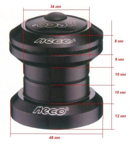 Рулевая колонка Neco H711AL, стандарт A-Head, под шток вилки 1-1/8", материал чашек алюминий 6061, диаметр чашек 34 мм, стальные опорные кольца, конусные картриджные подшипники СВВ-418, вес 108 грамм, якорь и крышка в комплекте.Характеристики