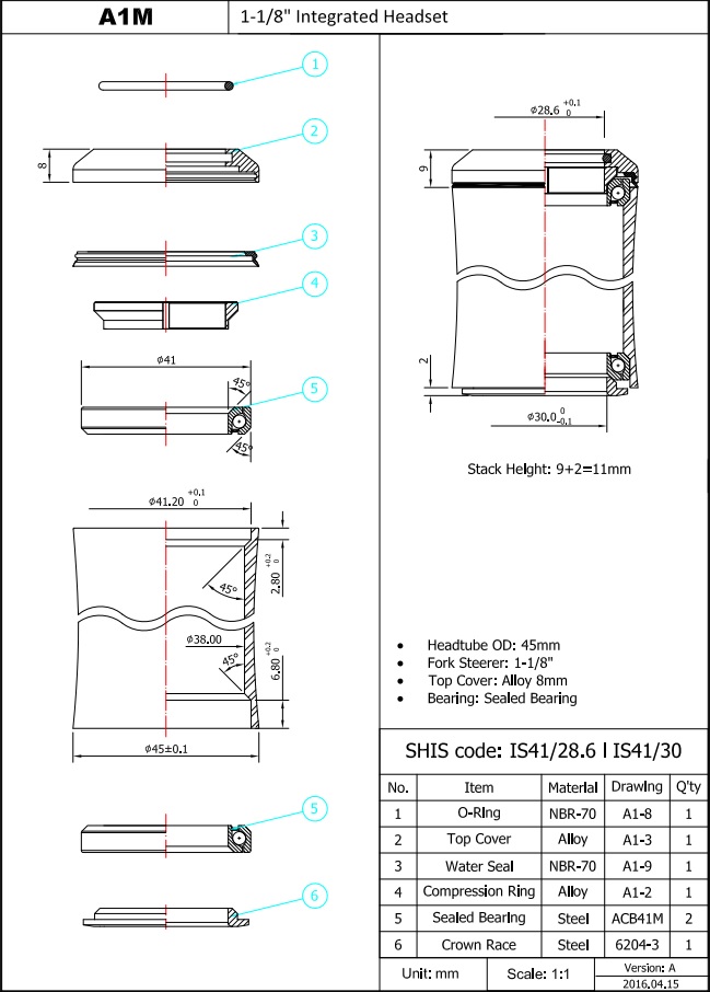 Рулевая колонка Token OMEGA A1M, стандарт 1-1/8" интегрированная, CANE CREEK, стальные чашки, размер 41х36°х45°, картриджные подшипники, вес 58 грамм.Характеристики
