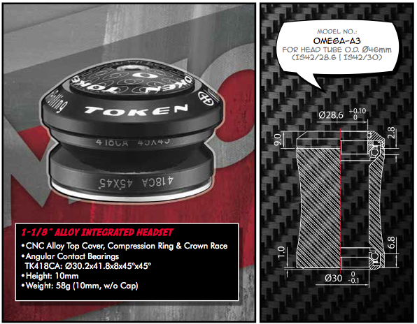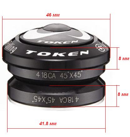 Рулевая колонка Token OMEGA-A3, интегрированная, для CAMPAGNOLO, под шток вилки 1-1/8", 41.8 мм х 45°х45°, промышленные подшипники 418CA, вес 58 грамм.Характеристики