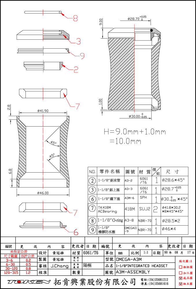 Рулевая колонка Token OMEGA-A3M, интегрированная, стандарт CAMPAGNOLO, под шток вилки 1-1/8", промышленные подшипники 41.8 мм 45°х45°, цвет черный, вес 75 грамм.Характеристики