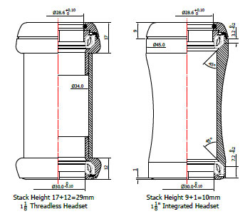 Рулевая колонка Token TK060 HEGGSET, 2 стандарта в 1 (внешняя и полуинтегрированная), под шток 1-1/8", для ATB, MTB, Road, размеры 28.6x34x30 мм, высота 29 мм (внешняя) и 10 мм (интегрированная), полностью из алюминия 7075 T6, ACB подшипники, вес 97 грамм (внешняя) и 29 грамм (интегрированная), цвет красный.Характеристики