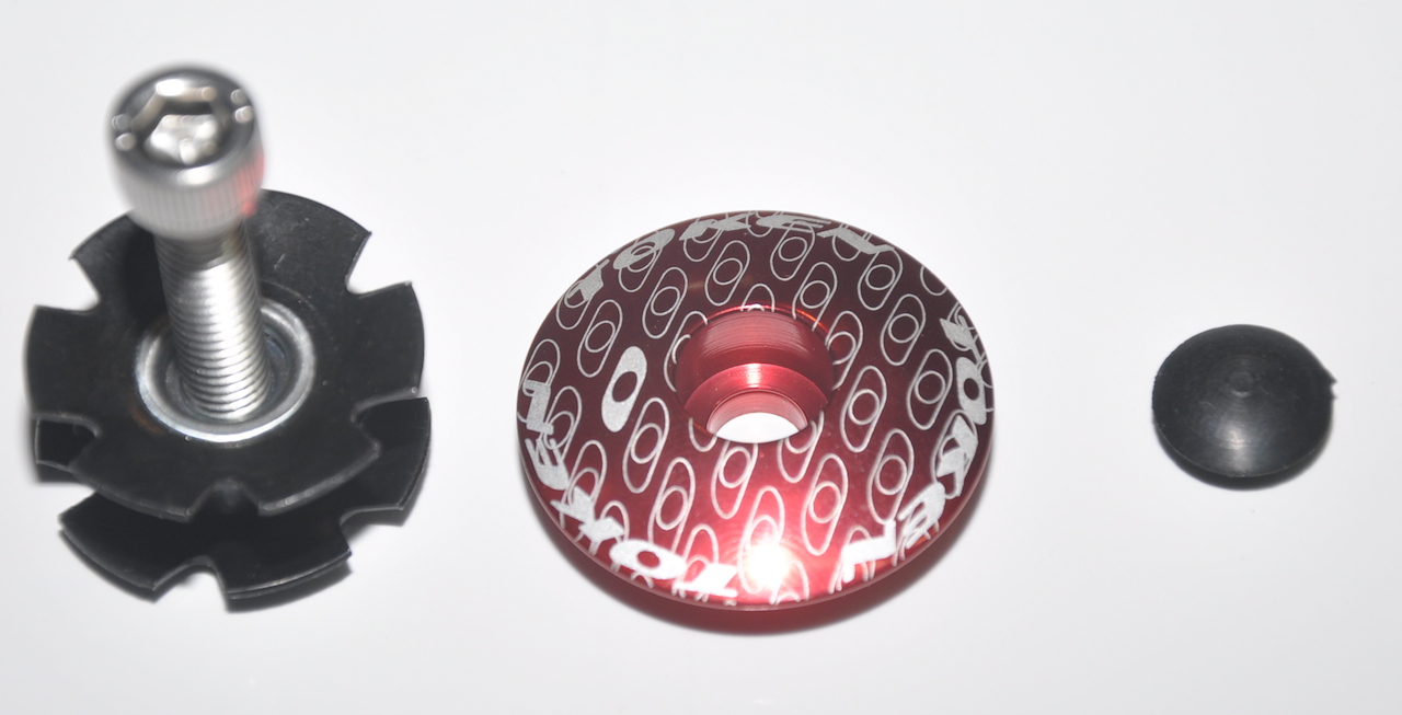 Якорь + крышка Token TK282, под шток вилки 1-1/8", алюминиевая крышка, болт из нержавейки, цвет красный, вес 28 грамм.