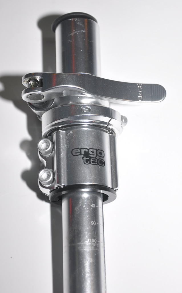 Удлинитель штыря вилки Ergotec Up&Down Stem, материал AL6061, устанавливается на штырь вилки 1-1/8, выполняет роль якоря, регулируется эксцентриковым зажимом по высоте от 10 до 100 мм, под вынос с посадкой 1 или 1-1/8, вес 395 грамм, цвет серебро.