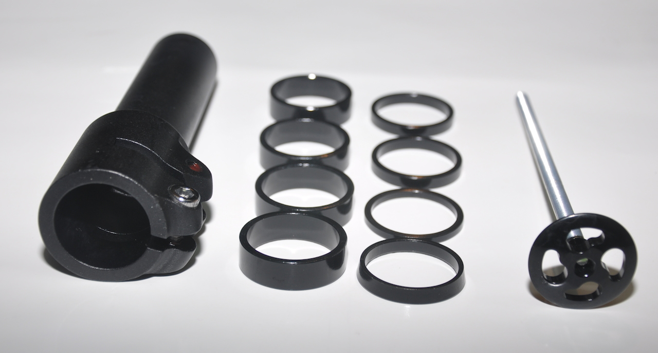 Удлиннитель штока вилки 1-1/8", регулируется на 40-105 мм, материал алюминий, вес 195 грамм.