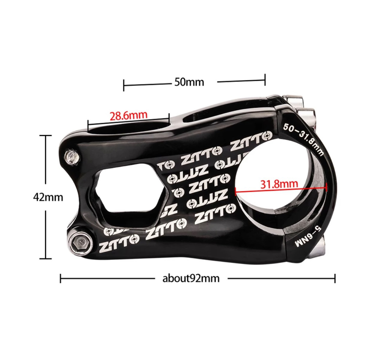 Вынос ZTTO Enduro MTB, материал CNC алюминий 6061, на шток вилки 1-1/8, диаметр под руль 31.8 мм, длина 50 мм, угол 0°.