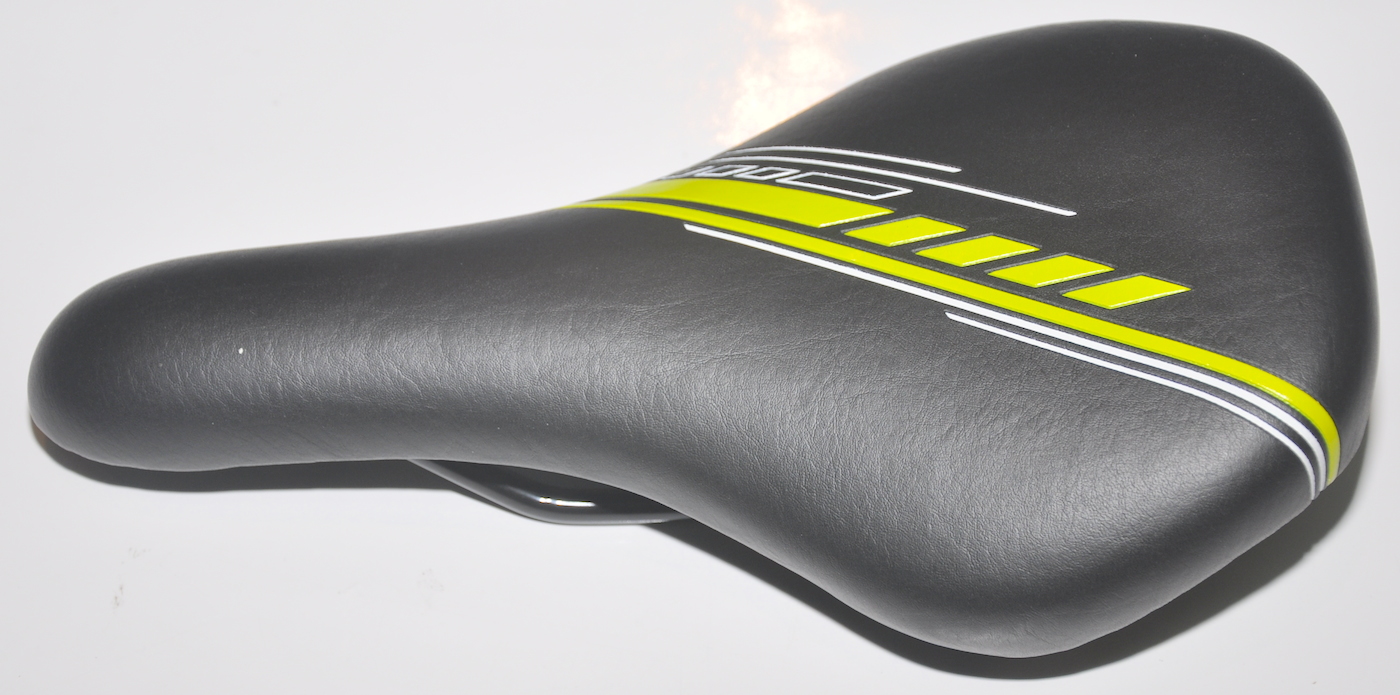 Седло для детей Velo VL-5104, размер 250х135 мм, мягкое, черное с зеленой графикой.