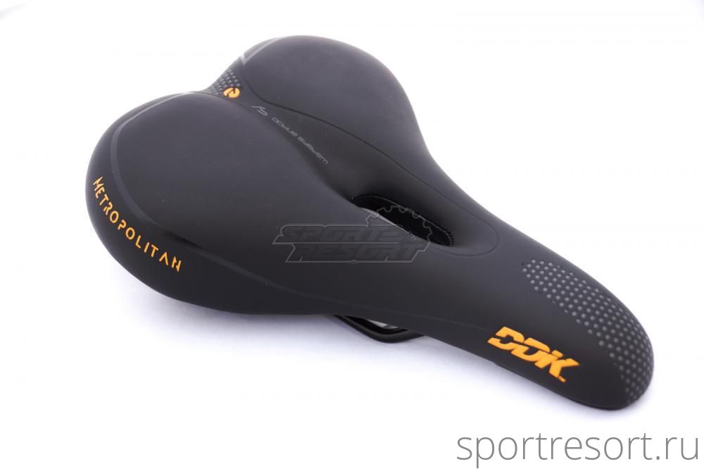 Седло DDK D-346 City Comfort, мужская геометрия с анатомическим вырезом по центру, размер 265х185 мм, верх из винилового покрытия, наполнитель пена, дополнительные эластомерные амортизаторы, рамки сталь, вес 670 грамм.