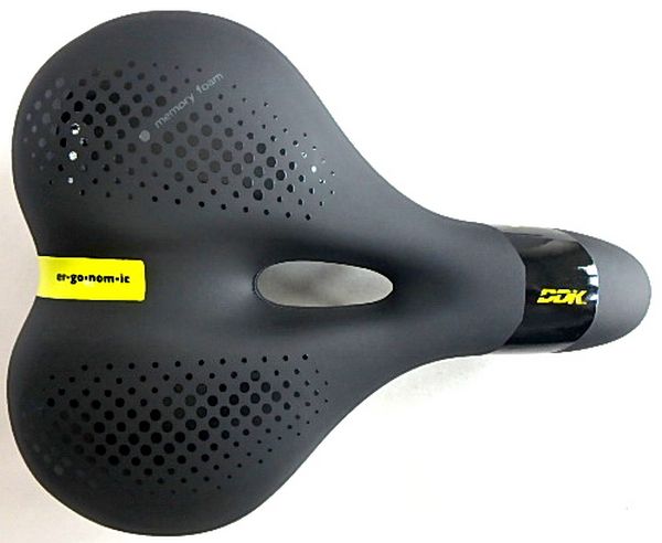 Седло DDK D-392MF Ergonomic Comfort, универсальное, анатомическая конструкция с вырезом по центру, размер 265х215 мм, верх из полиуретана, наполнитель пена с эффектом памяти, рамки сталь.