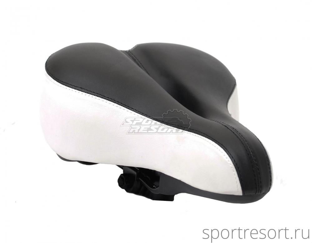 Седло комфортное, размеры 250х210мм с вентиляцией, с замком, эластомерное, черно-белое.