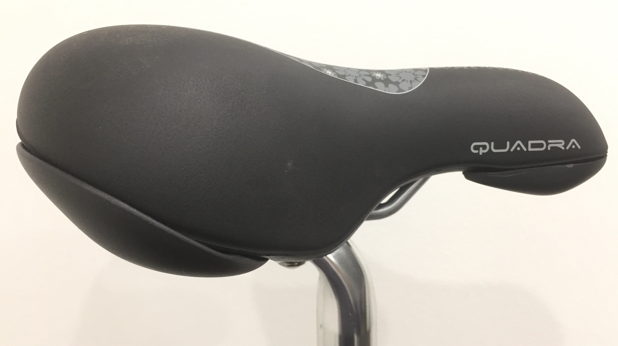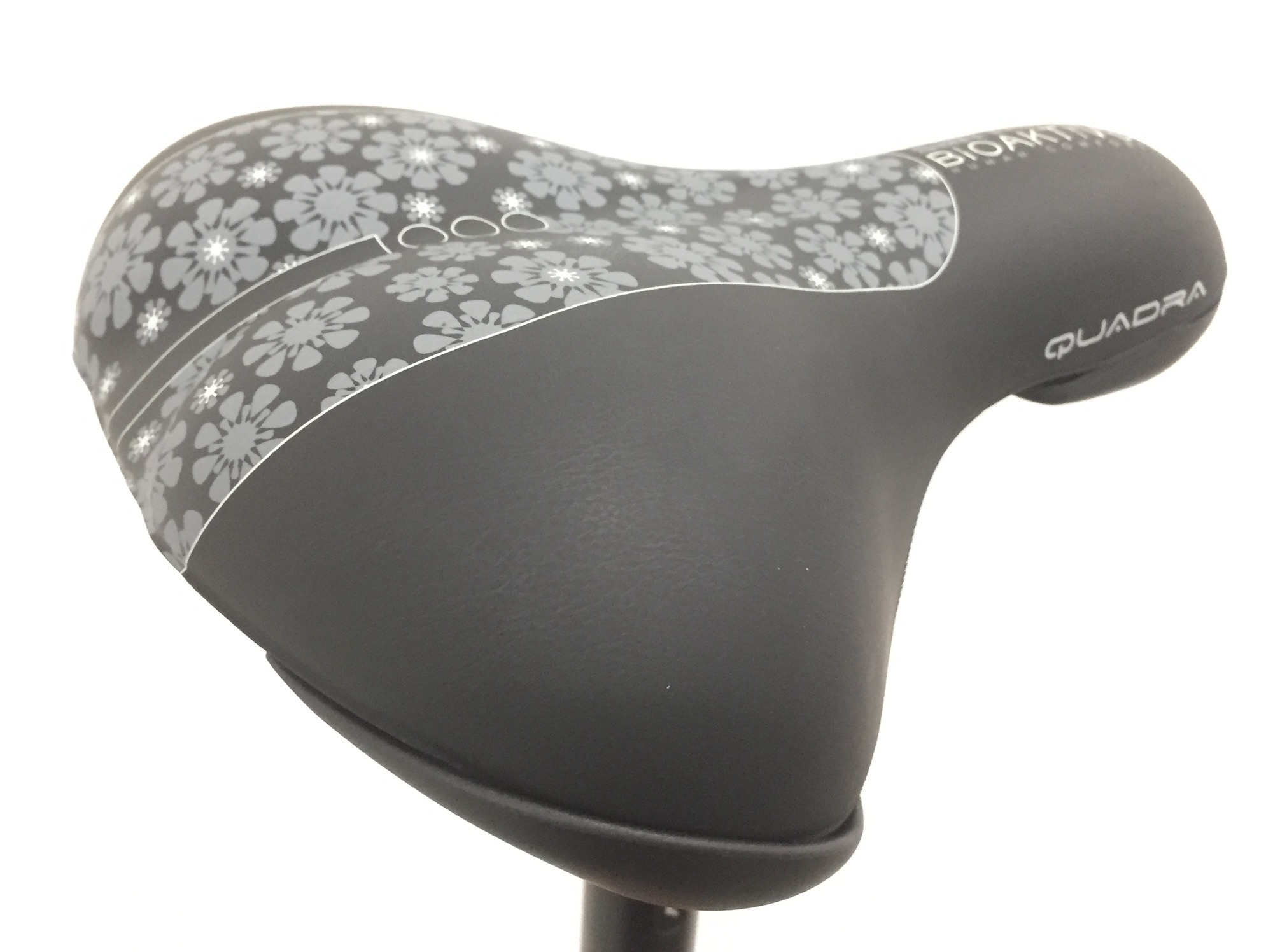 Седло Selle San Marco Quadra Due Glamour Rigid, серия Bioactive City, размер 269х220 мм, основа из пластика PP Sintex, верх из синтетической кожи, наполнитель Bio Foam, боковые бамперы для поддержки, рельсы Cr-mo, система крепления фонарей KLIP, цвет черный с графикой, вес 470 грамм. Сделано в Италии!
