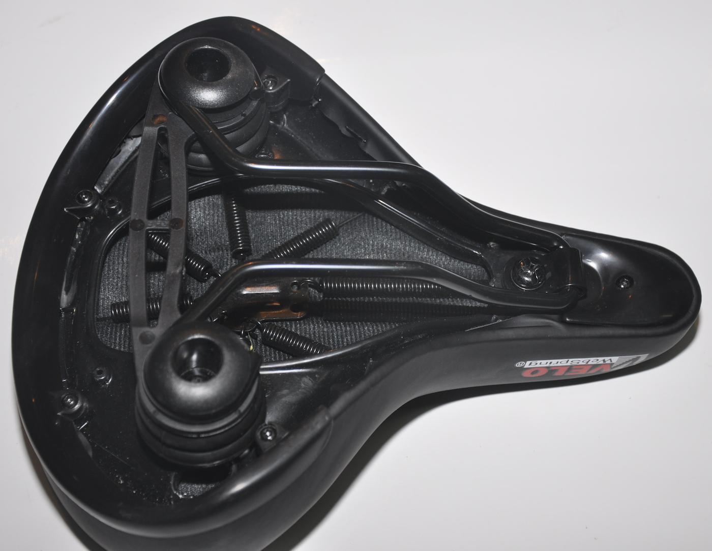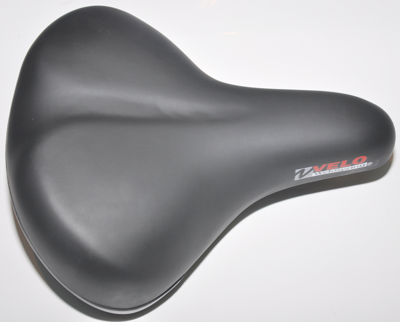 Седло Velo VL-8101E, размер 270х220 мм, пружинная конструкция, дополнительная амортизация на эластомерах, вес 780 грамм, черное.