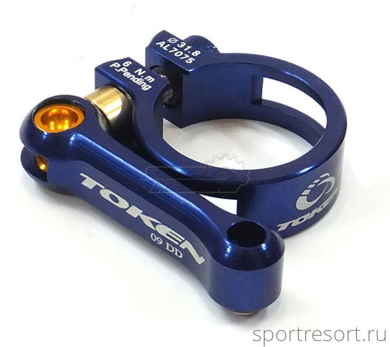 Хомут подседельный с эксцентриком Token TK1663 Pyro, диаметр 31.8 мм, супер лёгкий из алюминия 7075/T6, титановый болт, вес 24 грамма, анодирован в синий цвет с лазерной гравировкой.Характеристики