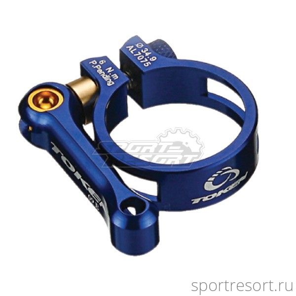 Хомут подседельный с эксцентриком Token TK1665 Pyro, диаметр 34.9 мм, супер лёгкий из алюминия 7075/T6, титановый болт, вес 25 грамм, анодирован в синий цвет с лазерной гравировкой.Характеристики