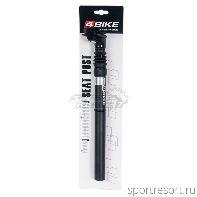 Подседельный штырь с амортизацией 4BIKE SPS-C373, ход 30 мм, регулировка жесткости в торце, материал алюминий, диаметр 31.6 мм, длина 350 мм.