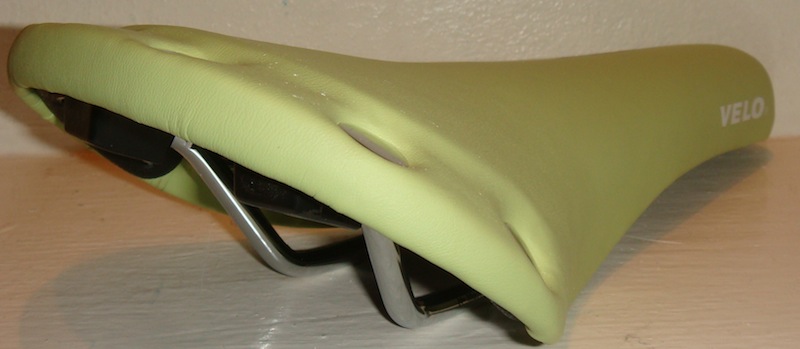 Седло Velo VL-1221, для трека или Fix, рэтро дизайн, размеры 270 х 150 мм, верх из синтетической кожи, наполнитель пена, с металлическими клёпками, вес 320 грамм, цвет светло-зеленый.