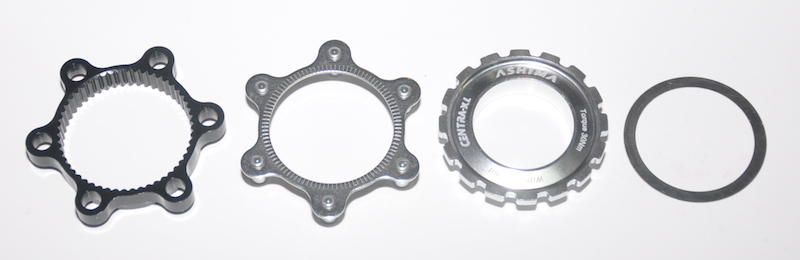 Адаптер Ashima AC03, для крепления 6-болтовых роторов на дискoвые втулки Center Lock - Shimano, совместим с осями 15 и 20 мм, вес 23 грамма, цвет серебро.