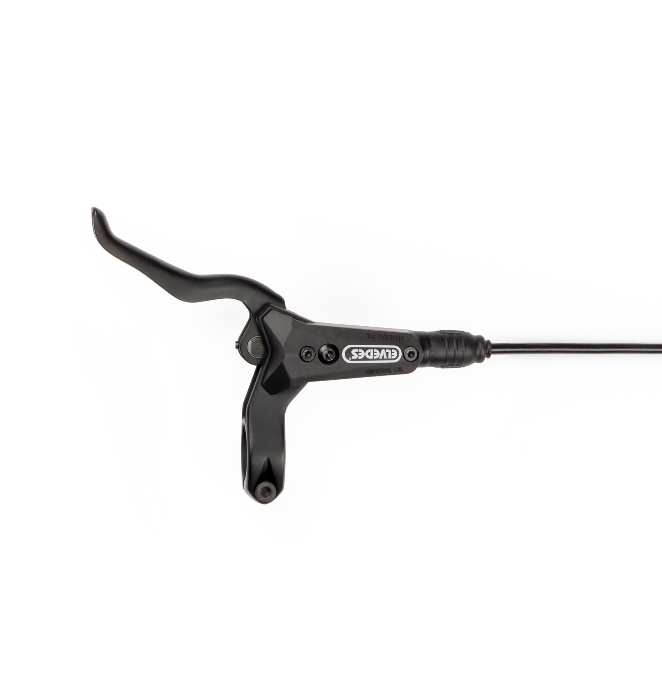 Комплект тормозов ELVEDES HP400, передний 850 мм, задний 1450 мм, два ротора 160 мм, адаптеры P/S, на миниральном масле, комплект оливок и штуцеров для укорачивания. Тормозные ручки под два пальца с регулировкой угла. Вес 395 грамм (сторона с диском и адаптером).Характеристики