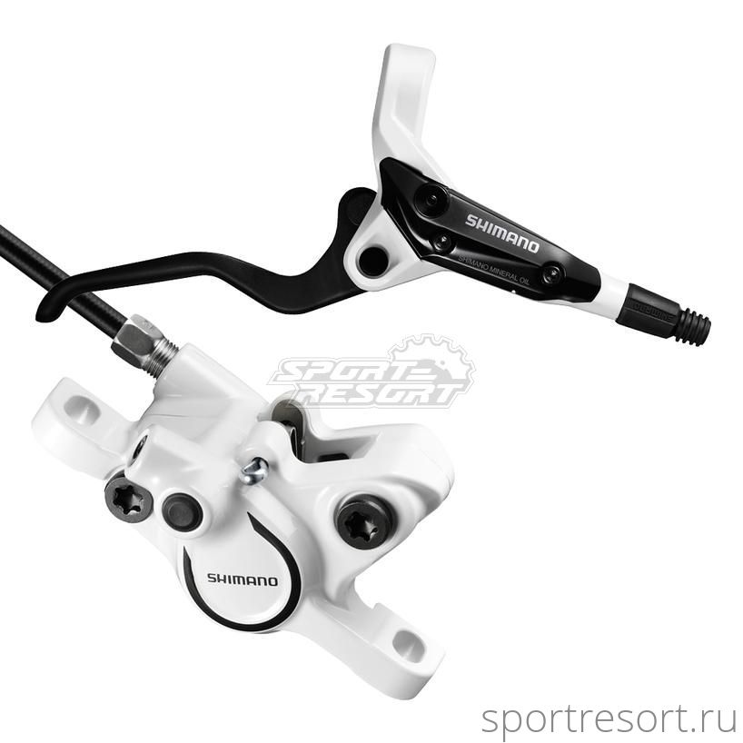 Тормоз дисковый Shimano M365, задний, правая ручка, длина гидролинии 1700мм, цвет белый, без адаптера, минеральное масло, прокачан и готов к установке. Укомплектован пластиковыми (композитными колодками) B01S.Характеристики