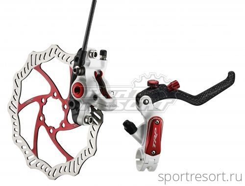 Тормоз передний дисковый TRP Dash Carbon F-160, с эргономичной карбоновой ручкой/магниевым хомутом, с 2-мя регулировками, с IS адаптером, красным ротором Ф 180мм (90 грамм), монокалипер из кованного алюминия, гидролиния 800 мм, титановые болты, цвет белый, вес в сборе 320 грамм (с диском).Характеристики