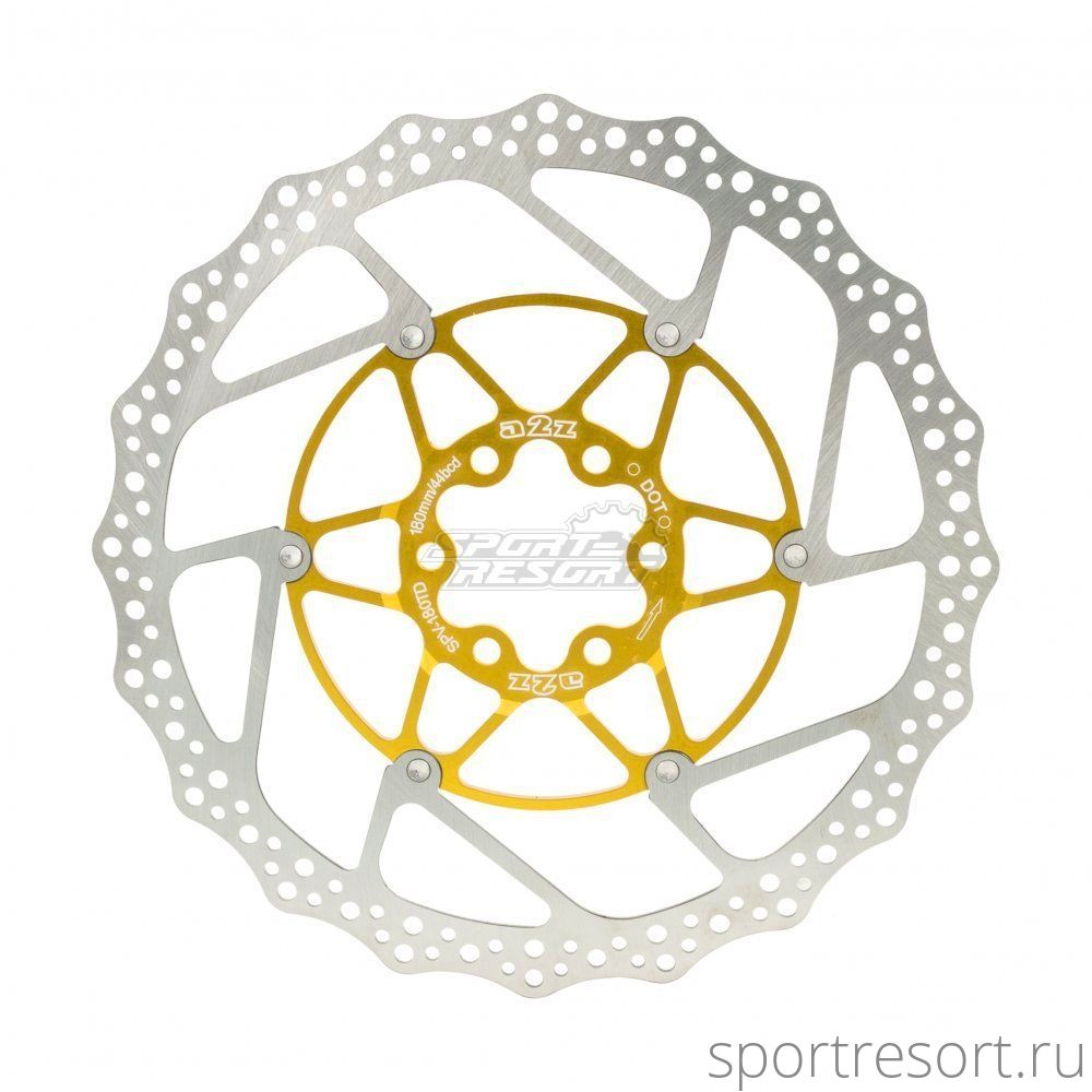 Тормозной диск A2Z серии SPV, размер 180 мм, дизайн DOT, крепление 6 болтов.Сделан из двух частей для уменьшения веса и более эффективного охлаждения. Центральная часть выполнена из алюминия 7075-Т6 с CNC обработкой, которая прдовтращает деформацию диска при перегреве, о основная часть из нержавеющей стали повышенной прочности. Цвет: золотой.Характеристики