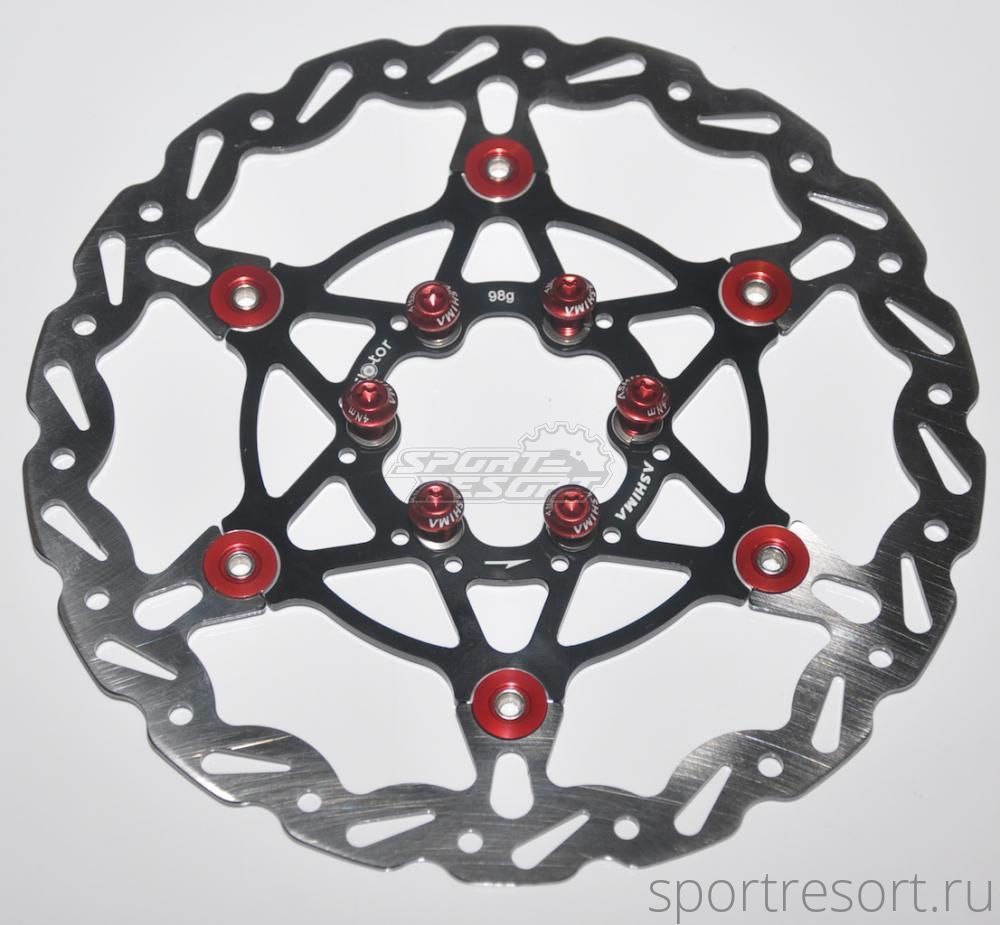 Диск тормозной Ashima ARF-2, диаметр 160 мм, на чёрном пауке из алюминия 7075, в комплекте алюминиевые болты М5х10 мм, вес 98 грамм (107 с болтами).Характеристики