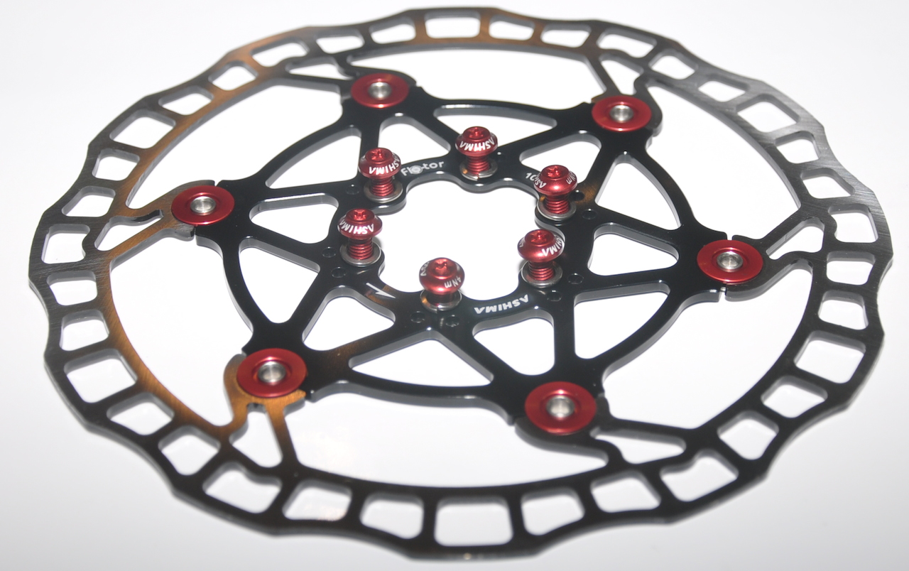 Диск тормозной Ashima ARF-2, диаметр 180 мм, на чёрном пауке из алюминия 7075, в комплекте алюминиевые болты М5х10 мм, вес 108 грамм (114 с болтами).Характеристики