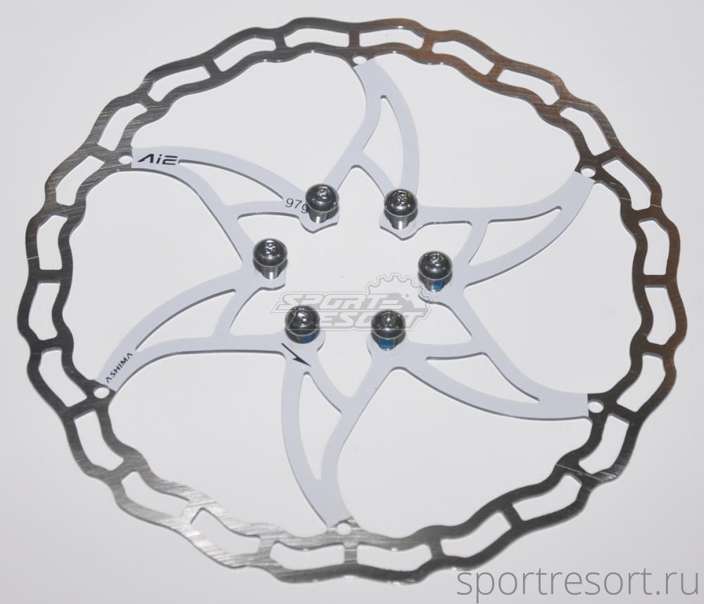 Легчайший в мире! Тормозной диск Ashima Ai2 Super Lite, 180 мм, паук белого цвета, с болтами, вес ротора 97 грамм.Характеристики