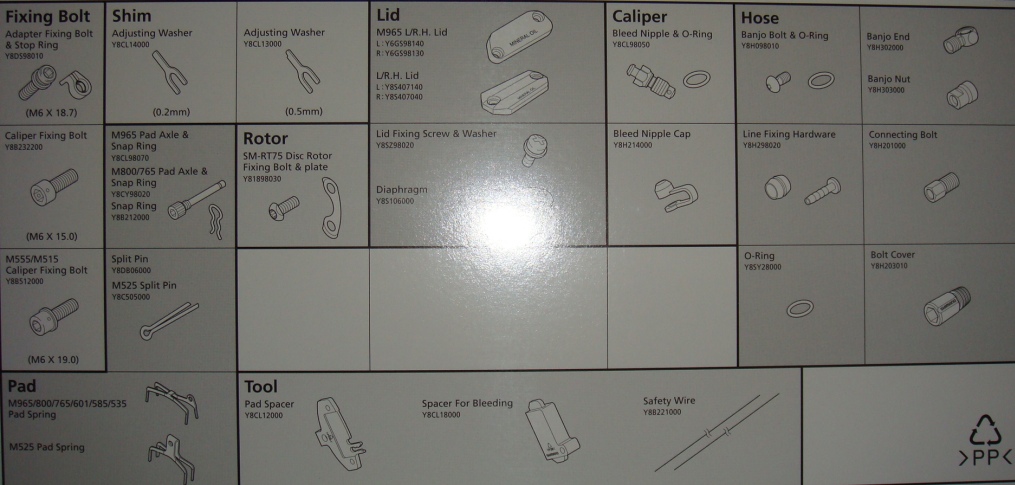 Запчасти для дисковых тормозов в чемодане Shimano Disc parts Box AX-2, в комплекте сборник подробных сервисных инструкций по дисковым тормозам Shimano.