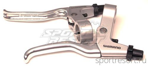 Тормозные ручки Shimano Non-Series BL-R550 для тормозов V-brake (Ви брейки), комплект правая и левая, трос и оплетка в комплекте. Цвет - серебро. Назначение - шоссе, плоский руль.