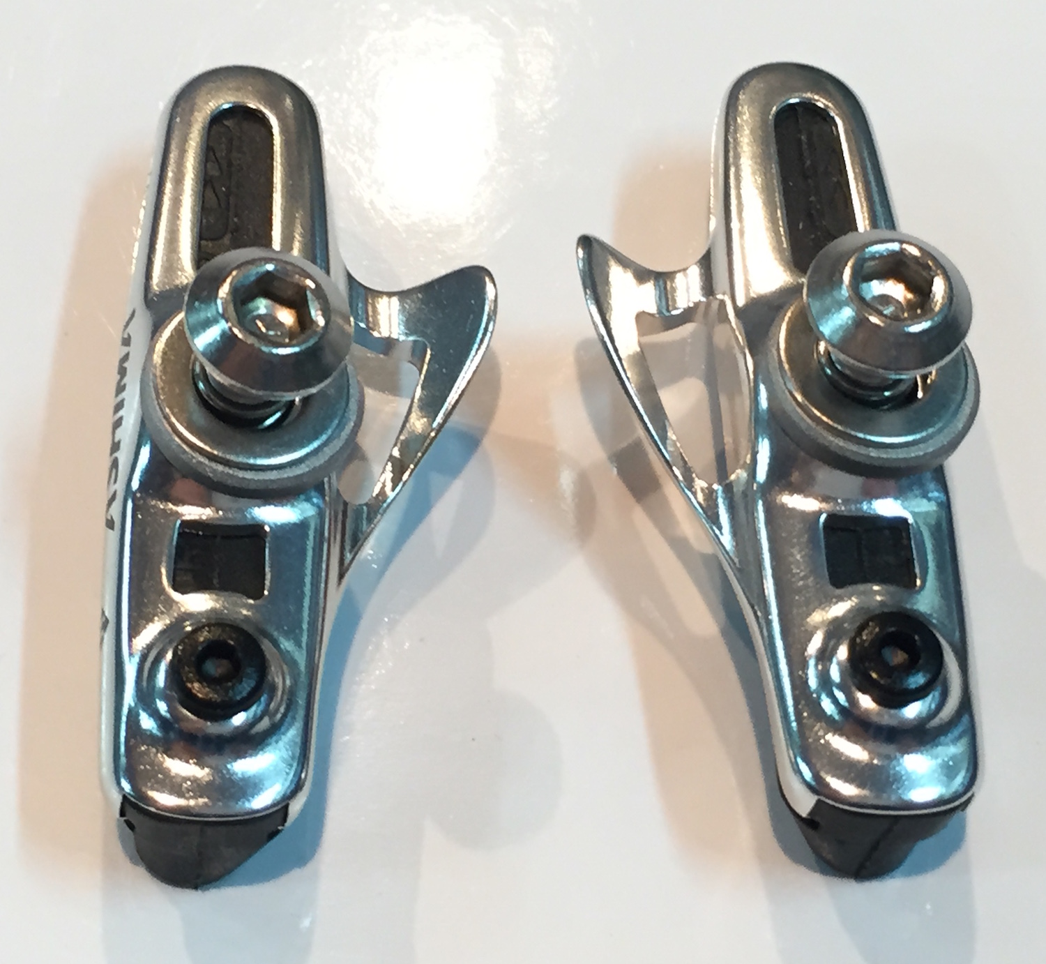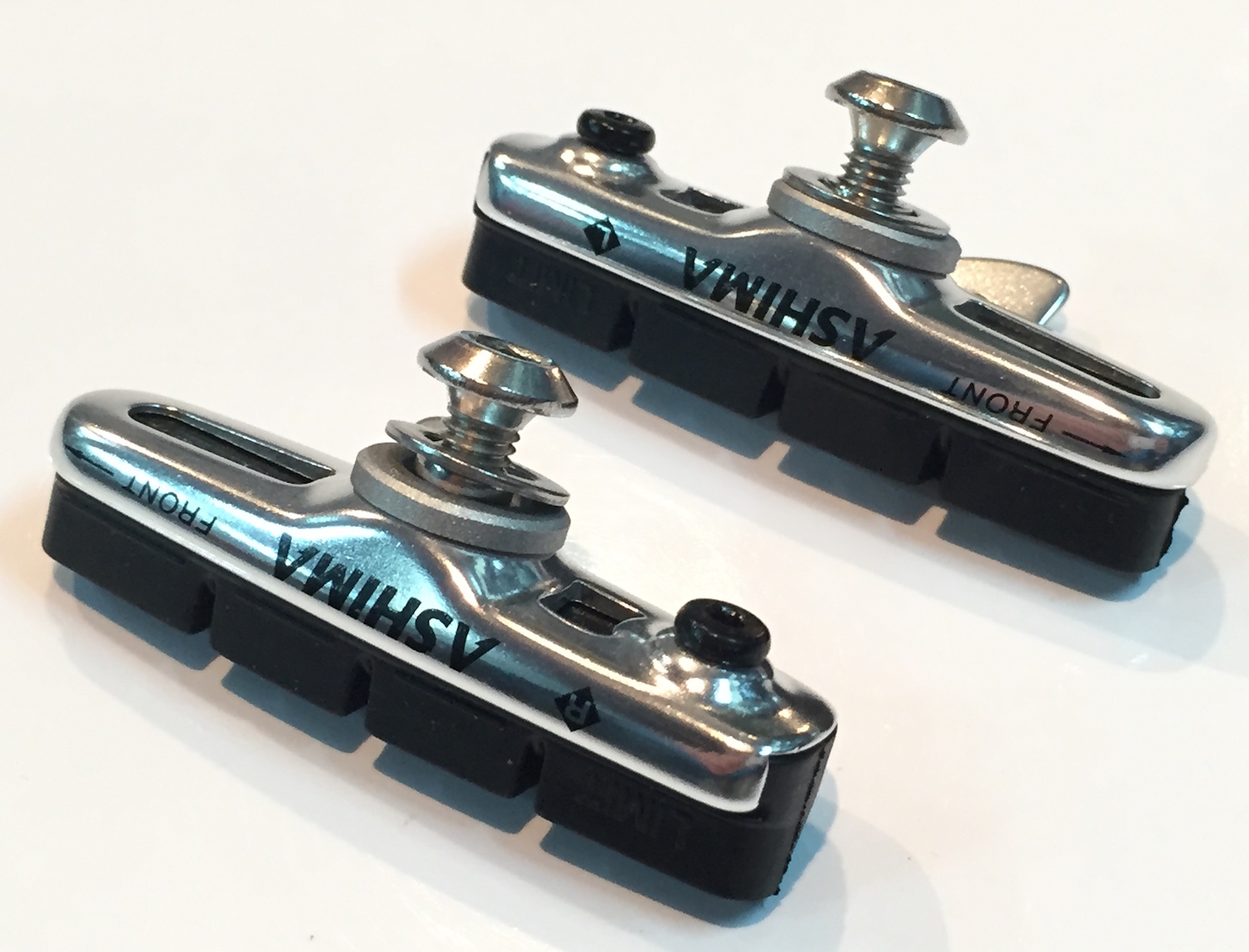 Тормозные колодки Ashima ARS45CR-P-HU-AL, картриджные, шоссейные 54 мм, ультралёгкое основание "Skeleton"; совместимы с Shimano Dura-Ace BR-7800/Ultegra 105 и другими тормозами Shimano, крепёж из н/ж стали, серебристые.