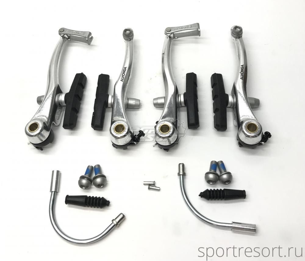 Тормоз Alhonga V-Brake HJ-721ADX, комплект (передний и задний), длина рычагов 22-39 мм, материал алюминий, в комплекте с резиновыми гофрами, комплектом тормозных стяжек и болтов для установки.