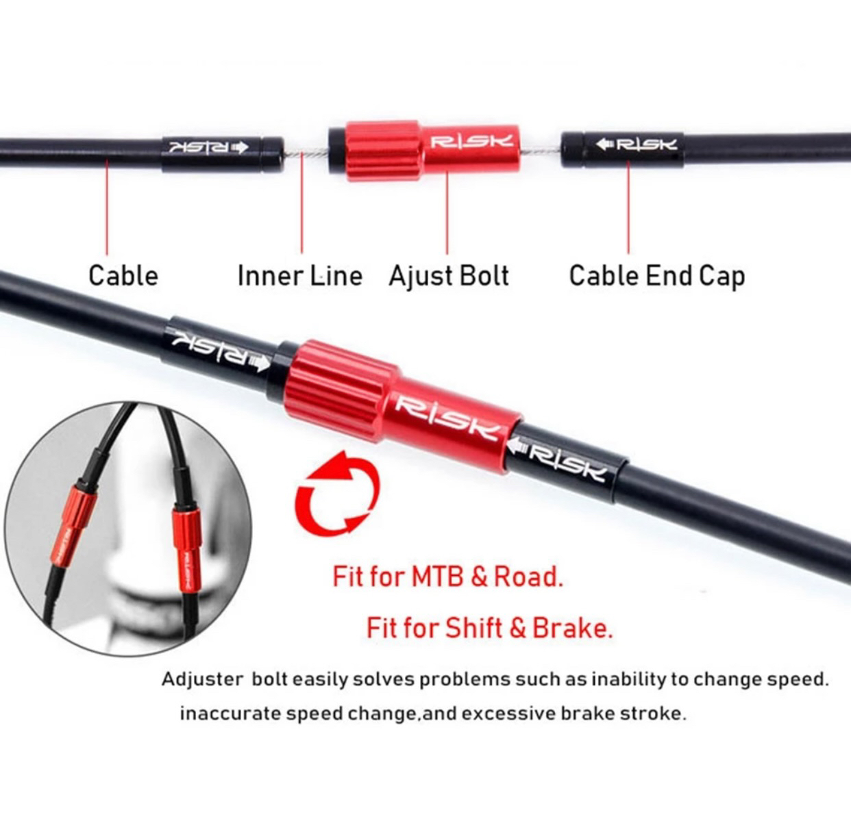 Регулятор натяжения троса RISK Inline Cable Adjuster, устанавливается в разрез рубашки. Универсальный, для переключения или тормозов. Материал алюминий. Цена за 1 штуку.
