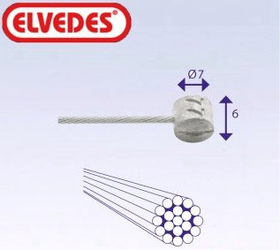 Трос тормоза Elvedes ATB, 19 жил, размеры 1.5х2000 мм, наконечник: 7х6 мм, упаковка 100 штук