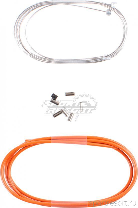 Универсальный набор для тормозов ELVEDES ATB Brake Kit Orange. В набор входит: 2 19-ти жильных тормозных троса Ø1,2 Х 1350 и 2350 мм. Оплетка длиной 1650 мм. Расходные запчасти: 6 колпачков на рубашку из нержавеющей стали, 2 алюминиевых наконечника для троса, резиновые ограничители на трос (o-ring) для защиты рамы.