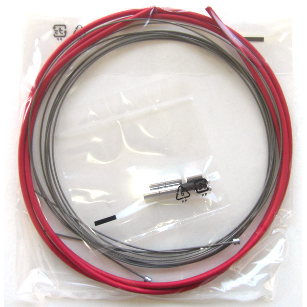 Трос + оплетка переключателя Shimano Road SP41, красная оплетка 1700 мм , трос:1.2X2100мм с тефлоновым покрытием x 2шт., концевики и наконечники.