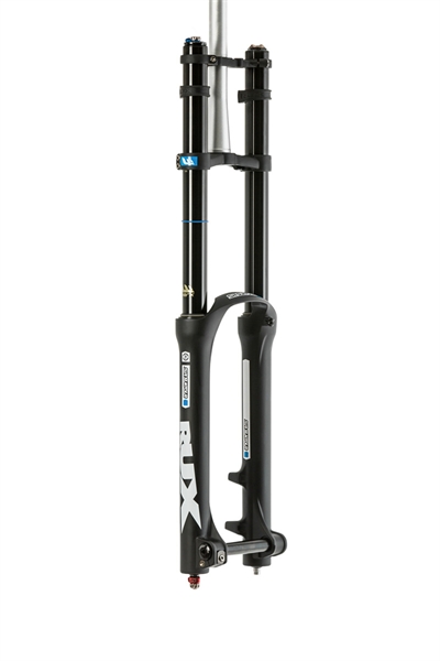 Двухкоронная велосипедная вилка Suntour RUX R2C2-PCS, для велосипедов с колесами 27.5 дюймов (650b), назначение DH, Freeride, ход 200 мм, алюминиевый конический штырь 1.5" - 1-1/8", ноги 38 мм, ось 20 мм. Конструкция с двумя коронами. Настройки: 2-х скоростная компрессия, отскок (Rebound), регулировка жесткости воздухом (Air Spring). Крепление дискового тормоза Post Mount под диск 180 мм и больше. Вес 2900 грамм. Цвет черный.Характеристики