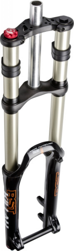Двухкоронная амортизационная вилка RST KILLAH, для велосипедов с колесами 26 дюймов, ход 200 мм, шток 1-1/8" из алюминия 7050, ноги 36 мм из алюминия 7050 Hard Anodize с покрытием снижающим трение, магниевая ось 20 мм Thru-axle. Регулировки: скорость сжатия, регулировка отскока (Rebound). Картридж: гидравлическая система Oil(R), Coil/MCU(L), вес 3200 грамм. Разрешено для установки на электровелосипеды.Характеристики